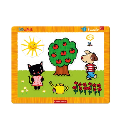 Allererster Puzzlespaß mit PePe & Milli. 6 große Puzzleteile laden zum Greifen und Spielen ein.