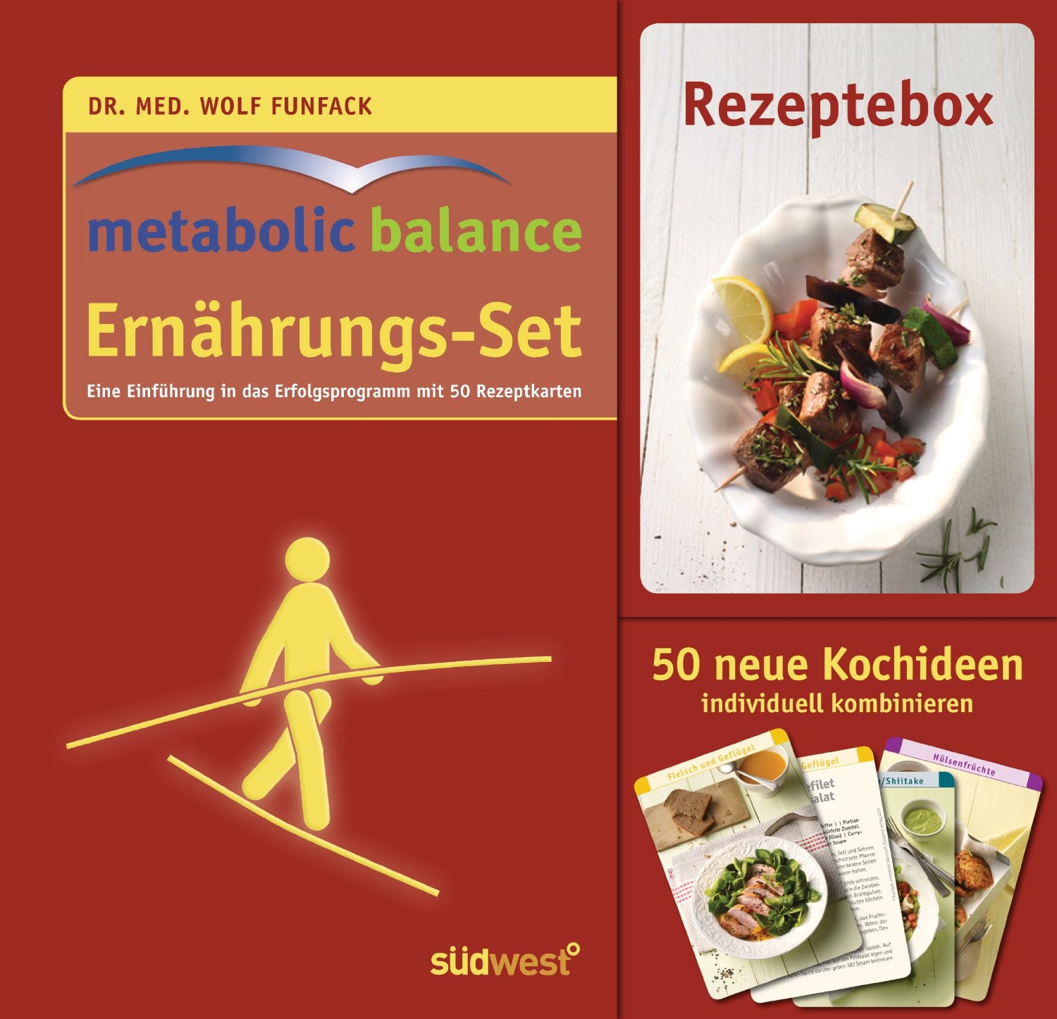 Metabolic balance® ist eine der erfolgreichsten Ernährungs- und Diätprogramme der letzten Jahre. Aktuell wurde in einer unabhängigen wissenschaftlichen Studie bestätigt, dass metabolic balance® effektiv und langfristig zur Gewichtsabnahme führt und sich die Blutwerte sowie die persönliche, gesundheitsbezogene Lebensqualität verbessern. Das Stoffwechselprogramm basiert auf einem Ernährungsplan, der für jeden Teilnehmer individuell aufgrund seiner Blutwerte und persönlichen Daten zusammengestellt wird. Mit diesem neuen metabolic balance®-Ernährungsset bestehend aus einer kompakten Einführung in das Programm und 50 Kochkarten findet jeder Teilnehmer zahlreiche Rezeptideen, die zu seiner persönlichen Lebensmittelliste passen. Die durchgängig bebilderten Karten in der praktischen Schachtel können je nach Plan und Vorlieben individuell kombiniert und sortiert werden und sind ideal für den Einkauf.
