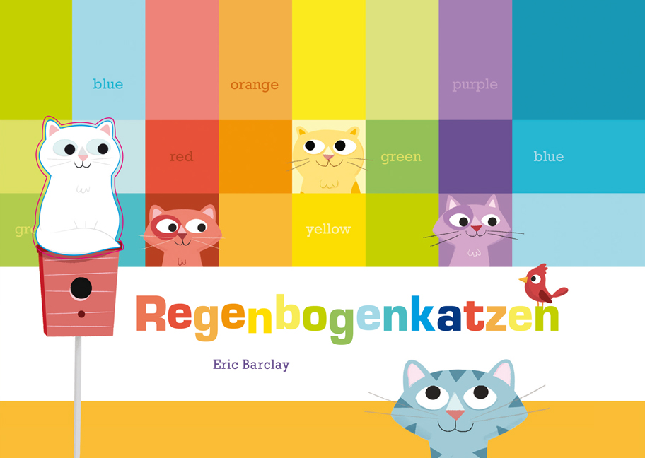 Sieben Katzen von weiß über rot, orange, gelb, grün, blau und violett bis schwarz – gemeinsam so bunt und fröhlich wie der Regenbogen – laden ein zum Entdecken und Erkennen von Farben!