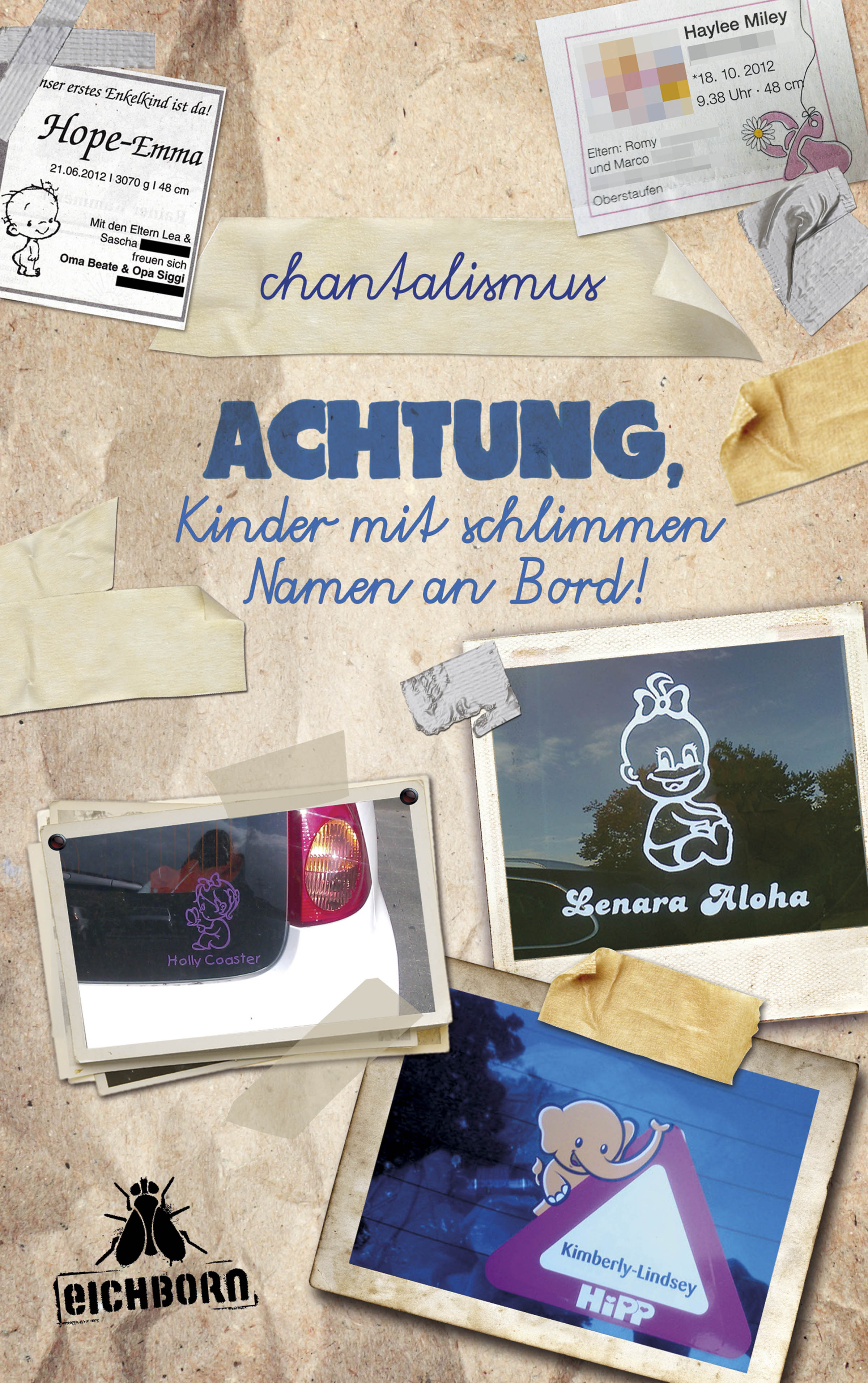 Können sie mit dem Begriff Chantalismus etwas anfangen. Ist auch unter Kevinismus bekannt. Es handelt sich um das Phänomen kreativer Namensgebungen von Kindern in Deutschland (und wohl auch in Östrereich). Im vorliegenden Buch werden diverse Auswüchse vorgestellt und entsprechend kommentiert. Beispiele: „Hope-Emma“ durch den Bindestrich auf ewig verbunden, oder „Julien-Roven Jürgen“ . Dieses Buch ist eine Reise durch die seltsamen Phantasien eigenwilliger Eltern. Alle angeführten Beispiele sind durch Fotos bzw. Faksimiles belegt. Diese Kinder können einem leid tun. Ein Panorama des Schreckens. Man staunt, lächelt und bedauert die Kinder und auch, ein wenig, die Eltern. Bleibt nur mehr aus einer Studie zu Vorurteilen und Vornamen von Lehrern zu zitieren.“Kevin ist kein Name, sondern eine Diagnose!“