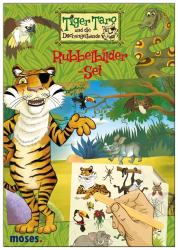 Tierische Rubbelbilder mit schöner Landschaft zum Gestalten. Auf den zwei Rubbelbögen befinden sich zahlreiche Bilder rund um Tiger Taro und seine Dschungelbande. Mit einem Holzstäbchen kann man die Tiere einfach in das Panorama hineinrubbeln.