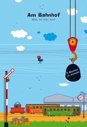 Klappt man das Buch auf, findet man die großflächige Darstellung eines Bahnhofs von oben, ähnlich wie ein Spielfeld. In drei weiteren kleinen, auf dem Feld angebrachten Pappbüchlein werden typische Bahnhofsberufe, das Depot und die Empfangshalle gezeigt. Auch integriert sind drei Stanzfiguren (Züge und Löschwagen). Damit lässt es sich so richtig schön auf dem Spielfeld herumsausen!
