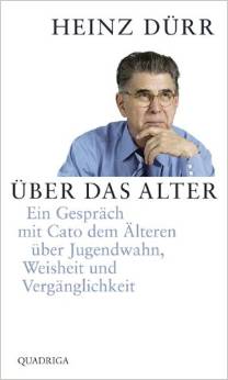 In kurzen Kapiteln und im launigen Plauderton schreibt Heinz Dürr über ein fiktives Gespräch mit Cato dem Älteren. Er hat ihn in sein Haus im schweizerischen Sils-Maria eingeladen und nun sitzen die beiden Herren bei einem Gläschen Wein zusammen, um über das Älter werden zu sinnieren. Für Cato gibt es vier Gründen, warum ihm „das Alter beklagenswert erscheint: weil es uns von der Ausübung einer Tätigkeit abhält, weil es unseren Körper schwächt, weil es uns sämtlicher Genüsse beraubt, weil es dem Tode nahe ist.“ Auf den folgenden Seiten erfährt man, wie schwer es dem Autor fällt sein eigenes Älter werden zu akzeptieren.