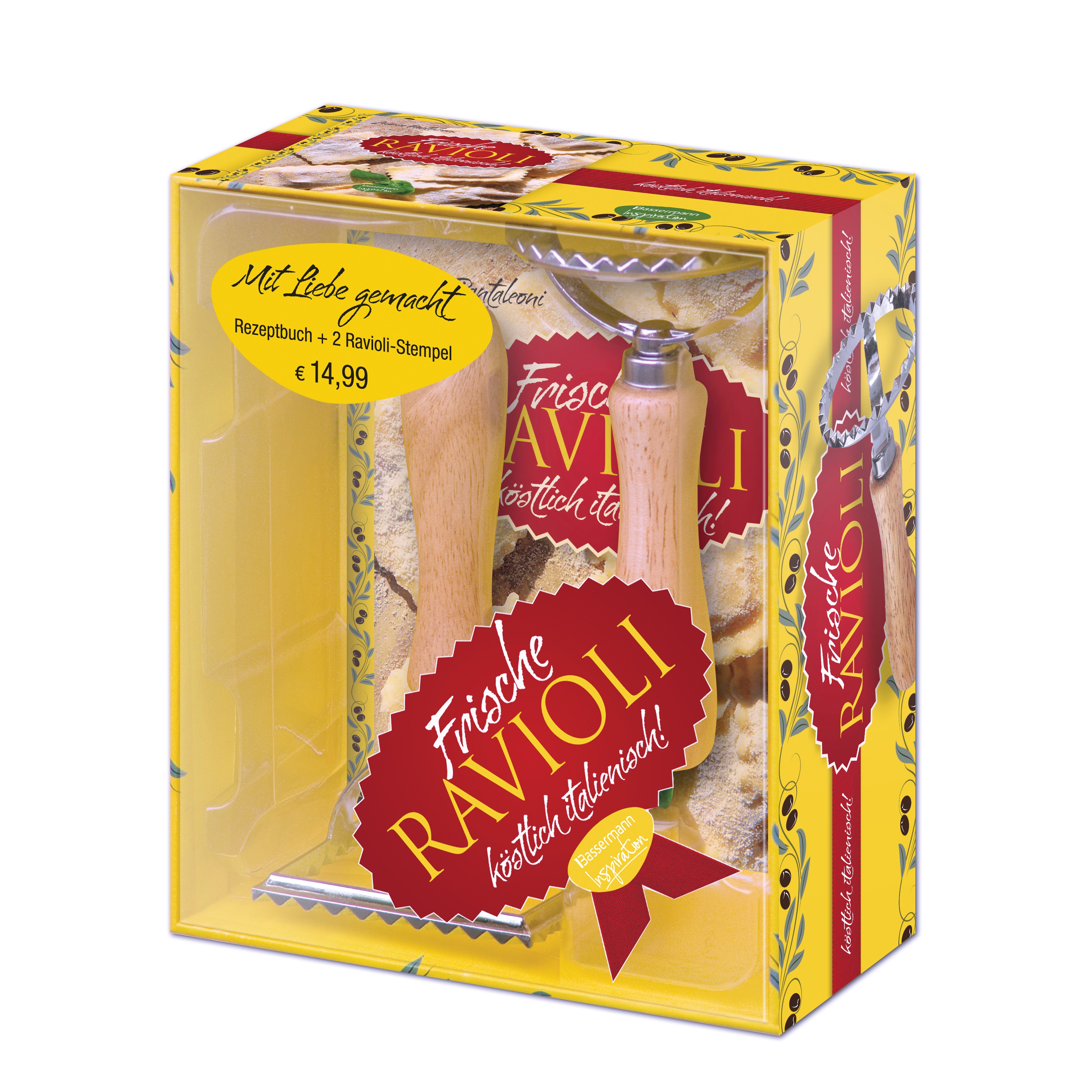 Nicht mit diesem kleinen aber feinen Set von Bassermann. Ich muss sagen, dass mich bereits die Optik mit den zwei Ausstechgeräten in helles Entzücken versetzt, so als würde ich mir selbst ein Geschenk machen. Und natürlich ist dieses kleine Set als Geschenk auch hervorragend geeignet. Vor allem musst du dir keine Sorgen machen, dass der oder die Beschenkte dich darob verfluchen wird, weil Ravioli machen schier unmöglich erscheint. Nein, echt jetzt, nicht die Welt! Allerdings, eine Nudelmaschine solltest du schon haben, da der Teig, wenn du ihn nur mit dem Nudelholz ausrollst, zu dick bleibt für meinen Geschmack.