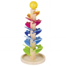 Stilvolles Murmelspiel. Spiralförmig kullern die Murmeln den Turm hinunter und erzeugen dabei angenehme Klänge. Dieses Murmelspiel ist nicht nur hübsch anzusehen und eine tolle Dekoration für jedes Kinderzimmer, es lässt sich damit auch wunderbar spielen. 3 Murmeln sind inkludiert – wir haben aber gleich meine großen und kleinen Murmeln aus meiner Kindheit ausgepackt und versucht – und auch diese funktieren toll. Es ergibt einen schönen Klang, wenn Murmeln unterschiedlicher Größe den Klangbaum herunterrollen. Man kann das Spiel immer wieder gerne spielen, ohne, dass es fad wird.
