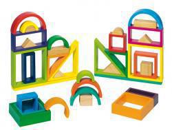 Mit dem hochwertigen Goki Baukasten Regenbogen kann man fantasievoll und geschickt bunte und ausgefallene Konstruktionen kreieren. Sogar das Einräumen der Bausteine in den Holzbaukasten ist wie ein Puzzle angelegt und ein Spiel für sich. Was passt zusammen, wie möchte ich gerne sortieren etc. Die Bausteine eignen sich auch großartig, um sie mit anderen Spielsachen zu kombinieren. So fahren bei uns zum Beispiel Autos durch die gebauten Tunnel und Enten rutschen über den Regenbogen. Ein wirklich tolles Set!