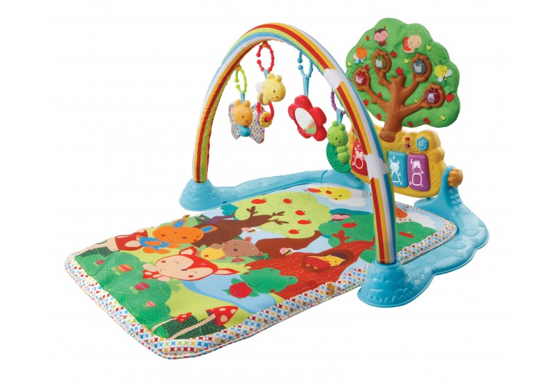 Falls ihr noch ein Geschenk für eure Kleinsten sucht oder jemand Anderem eine Freude machen möchtet, habe ich heute noch eine Empfehlung für euch. Vtech hat eine wirklich tolle Musik Spieledecke mit Spielebogen und allem drum und dran herausgebracht. Diese Spieledecke spielt wirklich alle Stücke. Lustige Tierchen und ein Spiegel hängen auf dem Bogen und bieten zahlreiche Spiel- und auch Beissmöglichkeiten an. Im hinteren Teil zuerst als Deko, dann wirklich als Spielbereich gibt es jede Menge interaktiver Tasten und Knöpfe. Hier kann man nicht nur verschiedene Module einstellen, sondern es leuchtet auch noch alles herrlich. Gerade für Kinder, die sehr gerne Entertainment haben und auf Geräusche und Lichter ansprechend, ist dies eine tolle Beschäftigung. Alles ist wundervoll bunt und fröhlich und die Kinder freuen sich richtig darauf wieder spielen zu können. Auch am Bauch liegend gibt es viel zu entdecken, zu greifen und anzuschauen. Super gemacht!