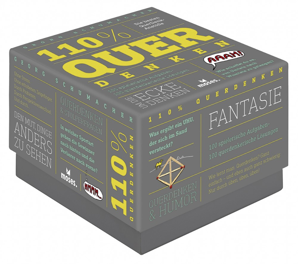 Die besten QuerDenkAnstöße! 100 spielerische Aufgaben und 100 querdenkerische Lösungen zeigen, wie einfach es ist, sich von allzu starren Denkmustern zu befreien. Schritt für Schritt kann man so entdecken, wie faszinierend Querdenken ist. Für mehr Kreativität im Job. Für mehr Fantasie im Alltag. Durch den Perspektivenwechsel sieht man Dinge anders und kommt garantiert zu verblüffend neuen Lösungsansätzen.