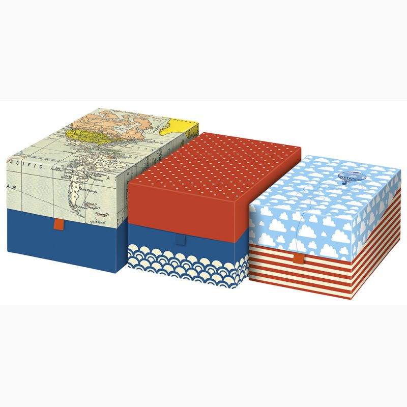 Gerade rechtzeitig zur Urlaubszeit ist dieses tolle Aufbewahrungsboxen Set aus der Reihe Fernweh vom Moses Verlag auf den Markt gekommen und verzaubert die heimischen Kästen. Es ist ein wunderhübsches Set, bestehend aus 3 unterschiedlich großen Boxen, die auch optisch komplett anders sind. Jede Box kann ab jetzt seine Geheimnisse verbergen und beherbergen. Eine schöne Idee, gerade mit Kindern hier kleine Schatzkisten aus den gemeinsamen Urlauben anzulegen. Absolut TOP!