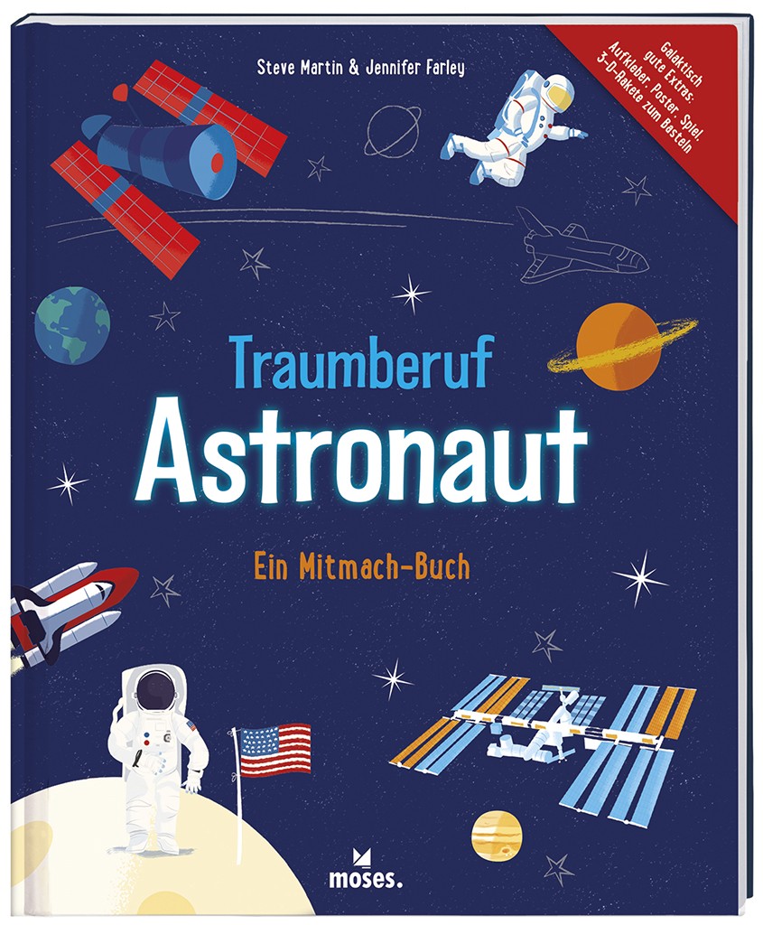 Dies ist ein wirklich toll und ansprechend aufbereitetes Buch zum Thema Astronaut für Kinder ab ca. 8 Jahren. Neben vielen Infos und anschaulichen Illustrationen gibt es für die Kinder einiges zum Basteln und Mitmachen und ist so auch sehr nachhaltig und länger in den Kinderzimmern vertreten und vorallem macht es den Beruf des Astronauten noch einmal mehr interessanter. Sehr ansprechend un schön gestaltet und gemacht ist dieses Buch eine wahre Freude. Es gibt neben einem Brettspiel, tollen Stickern und einer tollen 3D Rakete zum Basteln noch jede Menge anderer toller Sachen zum Werkeln.
