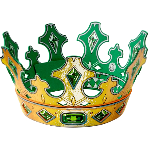 Grün-goldene Krone für einen erhabenen König oder mutigen Prinzen. Perfekt zum Verkleiden für Kindergeburtstage und Faschingspartys. Aus Moosgummi. Kann von beiden Seiten getragen werden.