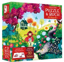 Mit diesem Set aus einem 30-teiligen Puzzle und einem frech illustrierten Märchenbuch können Kinder in die Geschichte von Rotkäppchen und dem bösen Wolf eintauchen.