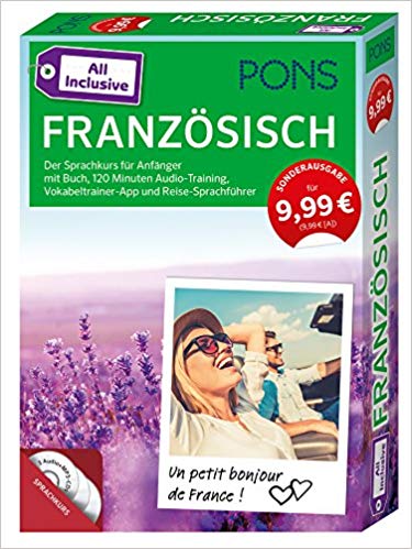 Dieses tolle Französisch Lernset ist mit 9,99€ ein echter Hingucker. Es ist ein Sprachkurs für Anfänger mit einem Buch, 120 Minuten Audio Training, einer Vokabeltrainer App und einem Reise-Sprachführer. Im Buch lernt man Schritt für Schritt Französisch und erhält zahlreiche Erklärungen, Übungen und Tipps. 3 Cds mit einer Gesamtlaufzeit von 120 Minuten Audio Training bieten eine optimale Ergänzung. Möchte man den Wortschatz erweitern und Vokabeln trainieren, dann gibt es auch noch die dazugehörige App, so ist man immer mobil und kann auch unterwegs noch ein bisschen lernen oder im Urlaub Vokabeln nachschlagen. Und wenn ihr auch noch in Frankreich unterwegs seid, dann gibt es auch noch einen Sprachführer mit den wichtigsten Sätzen und dem notwendigsten Wortschaft für die Reise. Eine super Kombination!