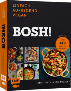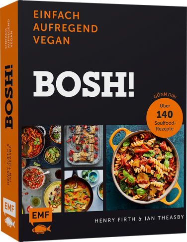 Die Idee von Bosh kommt von den YouTube Stars Henry Firth und Ian Theasby. Sie präsentieren Wohlfühlrezepte auf veganer Basis. Das Soulfood mit rein pflanzlichen Zutaten begeistert die Fans und erinnert an die kulinarischen Experimente von Jamie Oliver. Die köstliche und innovative Küche steht in dem Foodblog klar im Mittelpunkt. Das Kochbuch dazu enthält insgesamt 140 aufregende Rezepte und ist zum Bestseller in England geworden. Die Zubereitung der gesunden Mahlzeiten ist absolut einfach und schnell. Besondere Aromen wie Salted Caramel oder Tomate-Granatapfel sorgen für faszinierende Genüsse. Damit haben Sie richtig Spaß am gesundheitsbewussten Kochen!
