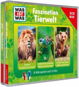 3 Cds sind in dieser tollen Faszination Tierwelt Box drinnen, insgesamt sind es sogar 6 Hörspiele zum Thema Tiere. Die bekannte und beliebte Reihe Was ist Was ist hier toll auf Hörspieltechnisch umgesetzt und man genießt die spannenden Infos über die Lieblingstiere und Jene, die es vielleicht danach noch werden. Auch die 3 lustigen Satzzeichen sind wieder mit dabei uns lotsen durch das Geschehen. Sehr informativ und gelungen!