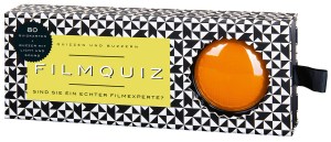 Dieses Spiel ist schon für etwas ältere Kids, bzw. Jugendliche und Erwachsene und es ist super lustig und unterhaltsam. Wer testet nicht gerne sein Wissen und dann noch dazu zu einem Thema wie Filmen. Das Spiel ist einfach zu spielen – es braucht mindestens 3 Personen, eine davon sollte der Quizmaster sein. Und dann geht es auch schon los. 80 Quizkarten warten darauf richtig beantwortet zu werden. Gerade für Leute, die gerne fernschauen wird es vielleicht lösbar sein, für Leute, die nicht gerne Filme schauen, wird es anstrengend 🙂 Aber für Beide sicherlich lustig. Der Buzzer ist super und der Ehrgeiz erwacht sofort, wenn man gegeneinander antritt.