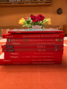 In den letzten Tagen, wenn die Blätter sich rot und gelb färben, war mir auch zu Hause nach der Farbe rot zumute und ich habe mir einige rote Bücher hergenommen und stundenlang darin geschmökern, gelesen und mir Anregungen geholt. Habt ihr auch manchmal solche Tage?