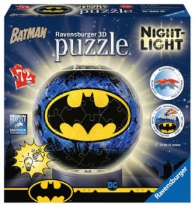 Hier mit diesem super tollen Puzzle hält man ein richtiges Highlight in Händen. 72 Teile mit dem Easyclick System zusammenbaubar und auch noch als Nachtlicht zu verwenden – ein richtiger Jackpot und ein Highlight fürs Kinderzimmer und alle Batman Fans. Das Puzzeln macht den Jungs so richtig Spaß. Dazu gibt es dann auch noch einen Leuchtsockel inkl. LED, der die Batmankugel zum Leuchten bringt. Ein extrem cooles Geschenk für coole Kids!