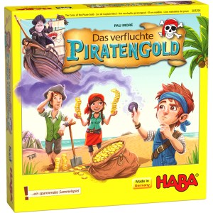 Ein Kinderspiel für mutige Schatzsucher. Bei dem spannenden Sammelspiel Das verfluchte Piratengold von HABA kämpfen mutige Abenteurer ab 5 Jahren gegen den gefürchteten Captain Black. Dabei versuchen alle Spieler, die meisten Goldmünzen aus dem gefundenen Schatz zu holen. Aber Vorsicht! In dem Sack voller Gold sind auch verfluchte schwarze Piratenmünzen, die Captain Black herbeirufen und die Spieler in Gefahr bringen können. Es dürfen wirklich nur die echten Goldmünzen in der eigenen Holzkiste gesammelt werden. Wer mit ein bisschen Glück die meisten Goldmünzen aus dem Sack ziehen kann, hat gewonnen.