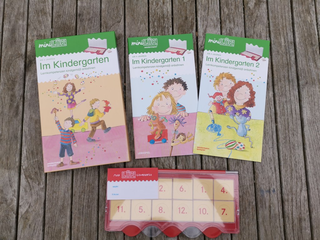 Ich bin ein großer Fan von Lernspielen und Lernbüchern, bei denen Kinder mit viel Freude und guten Ideen ihre Fähigkeiten einsetzen und üben können. Hier ist man beim Westermann Verlag genau richtig. Wir hatten bisher schon Bambini LÜK zu Hause, aber noch keine Version von Mini Lük. Das Set, das ich euch heute zeigen möchte, besteht aus 2 Lernheften und aus dem Kontrollkasten mit den Zahlen und ist genau für Kinder zwischen 4 und 5 Jahren ideal geeignet. Sie können hier ihre Wahrnehmung und auch Konzentration üben und lernen. Die beiden Übungshefte haben zu Beginn eine kleine Einleitung drinnen, wie man das Set verwenden kann und auch die Kinder damit selber ihre Antworten überprüfen können. Hier ist auch ein ganz starker Motiviationsfaktor inkludiert, die Kids freuen sich wahnsinnig, wenn sie sehen können, dass ihre Antworten richtig sind und haben so immer sofort Erfolg und Freude am spielerischen Lernen.