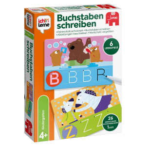 Mit „Ich lerne Buchstaben schreiben” entwickeln Kinder auf spielerische Weise ihre Feinmotorik. Sie lernen, die Buchstaben des Alphabets zu schreiben sowie Abbildungen zu beschreiben und vergrößern ihren Wortschatz. Ab einem Alter von 4 Jahren können Kinder lernen, erste Buchstaben und Wörter zu schreiben. Das Spiel „Ich lerne Buchstaben schreiben” bietet Spiele, die man allein oder zusammen spielen kann, und ist perfekt für diese Phase geeignet. Auf diese Weise kann das Kind zuhause üben, was es in der Schule oder im Kindergarten lernt!