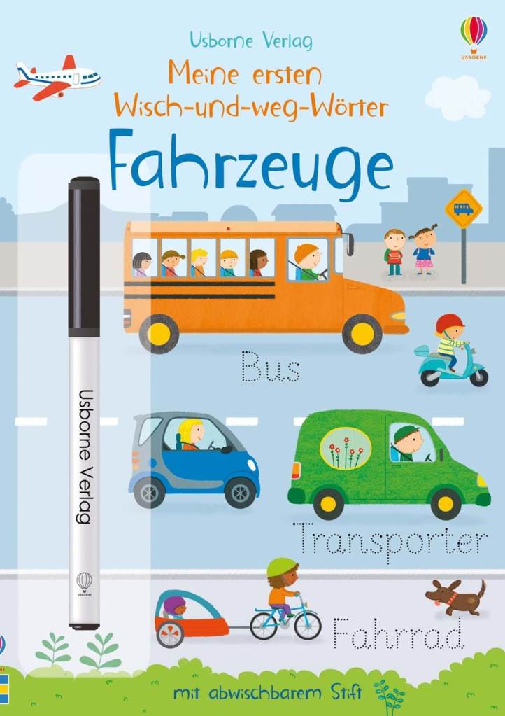 Meine ersten Wisch- und Weg Wörter – Fahrzeuge erschienen im Usborne Verlag