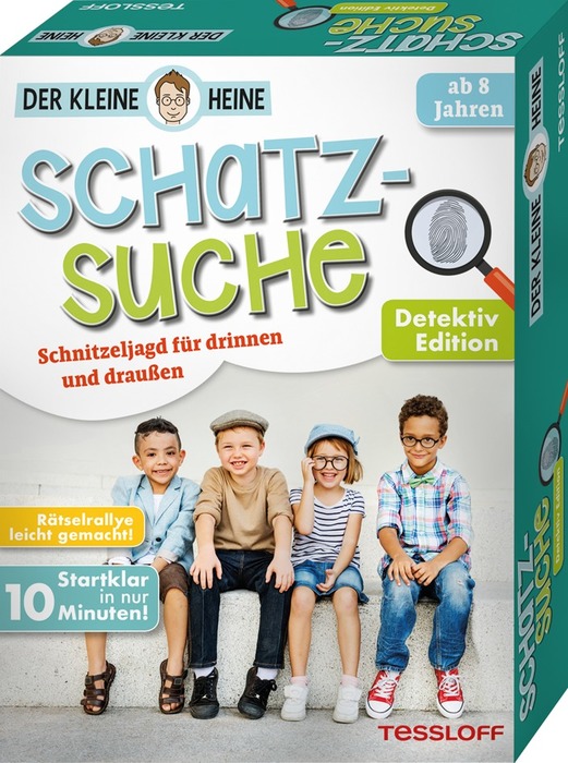 Einen Buchstabensalat auf der Suche nach der weiterbringenden Lösung durchstöbern, ein Zahlenschloss über ein Sudoku knacken oder einen Tresor mit der richtigen Kombination öffnen – schlaue Detektive ab 8 Jahren werden bei dieser Rätselrallye für drinnen und draußen ordentlich gefordert. Ob Rätsel- oder Ortskarten, Umschläge, Lösungs- oder Namenssticker, Rätselliste oder Bleistift – bis auf den Schatz enthält das Set alles, was man für eine aufregende Schnitzeljagd benötigt. Einfach der Schritt-für-Schritt-Anleitung folgen und schon kann der Spaß losgehen! Das Spiel ist mit oder ohne Begleitung Erwachsener bzw. älterer Kinder möglich.