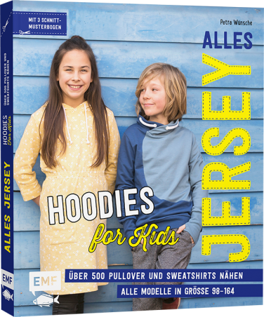 Kapuzenpullis kommen nie aus der Mode. Ob für den Sport, die Freizeit oder die Schule: Mit einem trendigen Hoodie oder individuellen Sweatshirts sind Mädchen und Jungen stets gut angezogen. Doch wie sollen sie aussehen? „Alles Jersey – Hoodies for Kids“ offenbart, wie variantenreich diese Kleidungsstücke sind. Es beinhaltet zahlreiche Anleitungen, wie sich Pullis mit und ohne Kapuze, oder auch mit praktischen Kängurutaschen ganz einfach nähen lassen. Außerdem zeigt es, wie leicht sich die Pullover mit nur ein paar Kniffen aufpeppen lassen. So entsteht Kleidung für Kinder, die bequem, praktisch und auf jeden Fall einzigartig ist.