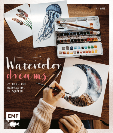 Ein Traum in Watercolor! In „Watercolor Dreams“ zeigt Jana Wind (www.instagram.com/jana_wind und www.bekleidet.net) wie sie es schafft, so wundervolle Motive in Aquarell zu kreieren. Sie führt in die Grundlagen und Techniken der Watercolor-Kunst ein und vermittelt in einfachen Schritt für Schritt-Anleitungen, wie man ihre bezaubernden Naturmotive nachzeichnen kann. Lass dich von der Motiv-Vielfalt und dem besonderen Stil der Autorin inspirieren!