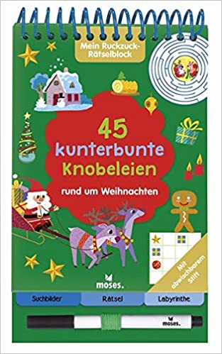 Der Rätselblock mit abwischbarem Stift verkürzt die Wartezeit bis Weihnachten. Mit insgesamt 45 spannenden Suchbildern, lustigen Labyrinthen und kniffligen Rätseln mit niedlichen Weihnachtsmotiven vergehen die vorweihnachtlichen Tage wie im Flug. Wo haben sich die kleinen Weihnachtswichtel versteckt? Und welchen Weg muss Natalie mit ihrem Schlitten nehmen, um zum Haus ihrer Großmutter zu gelangen?