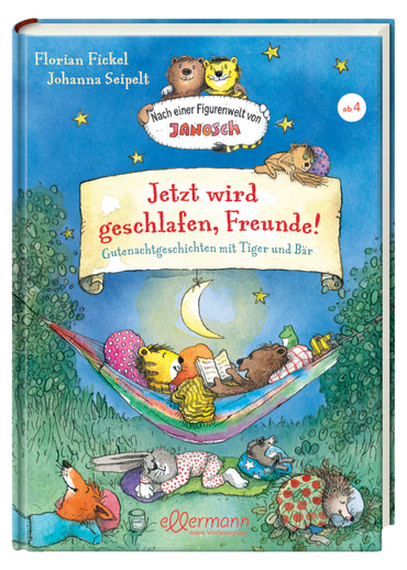 Jetzt wird geschlafen, Freunde! Gutenachtgeschichten mit Tiger und Bär, nach einer Figurenwelt von Janosch von Florian Fickel und Johanna Seipelt erschienen im Ellermann Vorleseverlag