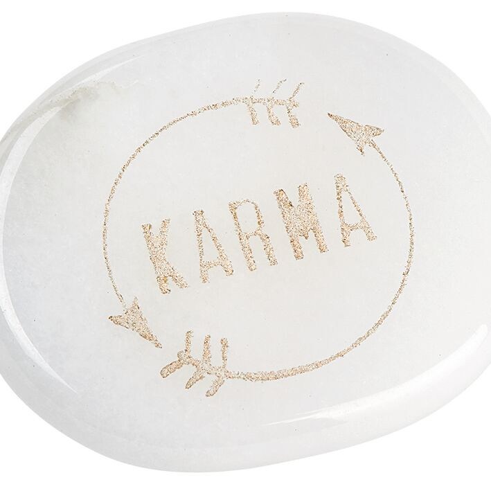 Dieser hübsche Kraftsein im Organza Beutelchen gehört auch zur Omm for you Reihe und ergänzt sie optimal. Sowohl Erwachsene, als auch Kinder und Jugendliche freuen sich über diese hübschen, handlichen und wirkungsvollen Kraftsteine. In der Reihe sind 6 verschiedene Halbedelsteine verfügbar aus denen man wählen kann. Auf dem Foto seht ihr den Bergkristall, soweit ich es erkennen kann. Die Form ist toll, um ihn auch in der Hosentasche tragen zu können. Er steht für Wissen und Weisheit und ist ein richtiger Schatz. Der Schriftzug Karma ist in Goldgravur darauf zu finden und verleiht dem Stein einen noch hochwertigeren Touch. Richtig schön und eine großartige Ide.