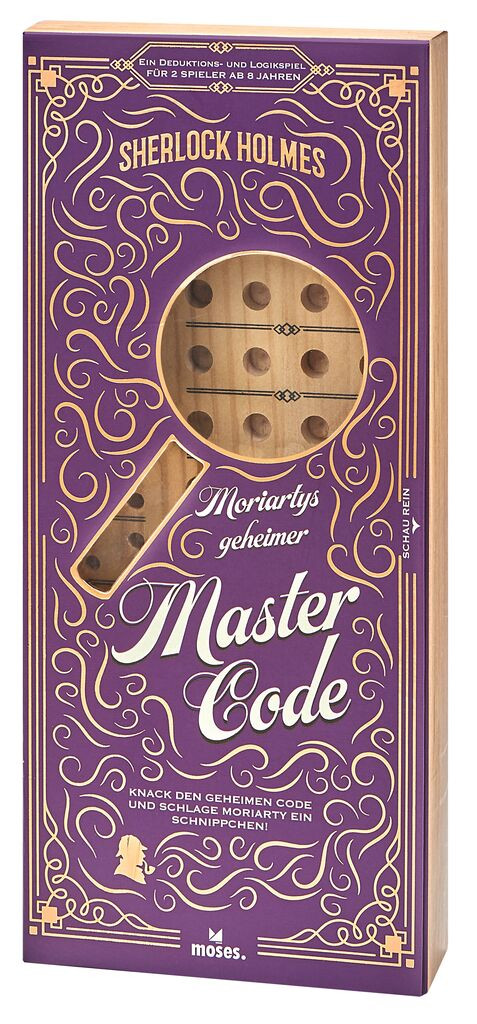 Den Denksport-Klassiker für zwei Personen gibt es jetzt in einer hochwertigen Holzausstattung: Sherlock möchte Moriartys geheimen Mastercode mithilfe von farbigen Pins knacken. Kann er den Farbcode rechtzeitig dechiffrieren? Ein packendes Spiele-Duell für kleine und große Detektive beginnt.