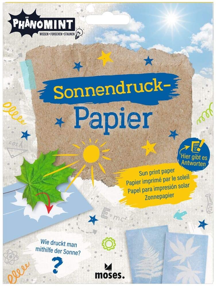 Ich finde die Phänomint Reihe aus dem Moses Verlag extrem gut gelungen und man findet hier so geniale Idee und Möglichkeiten kreative Forschungsarbeit mit den Kindern zu Hause machen zu können. Dieses Sonnendruck Papier ist etwas ganz besonderes und die Idee ist wieder einmal großartig. Mit Hilfe der Sonne drucken – hier fallen mit ad hoc zahlreiche Motive ein, die ich gerne umsetzen würde. Zusätzlich zum Set gibt es weiterführende Infos und Antworten zum Thema, die man mit den Kindern gemeinsam anschauen und ansehen kann. Die Experimente der Phänomint Reihe sind für Volksschulkinder gedacht. Einfach genial und sehr zu empfehlen!