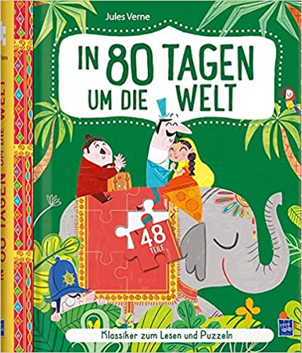 Die Geschichte um Jule Verne’s in 80 Tagen um die Welt, wird hier kindgerecht erzählt. Für zusätzlichen Spaß sorgt das bunte, 48 teilige Puzzle, das in einer Papiertasche zusammen mit dem Geschichtenbuch in der hochwertigen Box verpackt ist. Die Box kann durch eine magnetische Lasche geöffnet und wieder verschlossen werden. In der Innenseite der Box befindet sich sich das Motiv des Puzzles.