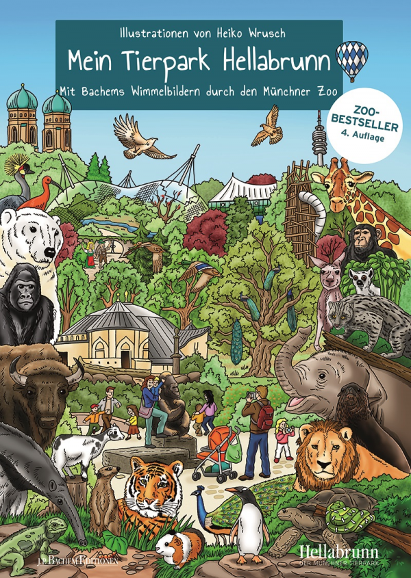 Vom Flamingo-Eingang im Norden bis zum Ausgang an der westlich gelegenen Isar: Der Tierpark Hellabrunn lädt zu einem spannenden Abenteuer ein. Tobende Orang-Utans, ringende Kängurus oder brüllende Löwen – auf einer Rundreise durch die Kontinente und spannenden Tierwelten können kleine und große Tierfreunde immer wieder Neues entdecken. Ob auf Safari in der Giraffensavanne, bei einer Expedition in die Polarwelt oder bei einem Besuch im Elefantenhaus bereitet das Suchen und Finden auf den kunterbunten Wimmelseiten Vorfreude auf den nächsten Zoobesuch und eignet sich fabelhaft dazu, um gemeinsam in schönen Erinnerungen zu schwelgen.