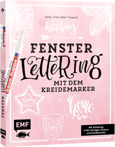 Es beinhaltet einen Kreidemarker von edding und es gibt viele Anleitungen, wie man Handletterings auf Glastüren und Fenster sowie Spiegel stimmungsvoll auf das Glas zaubern kann. Wer kann, zaubert vielleicht tolle Kunstwerke ans Fensterglas.