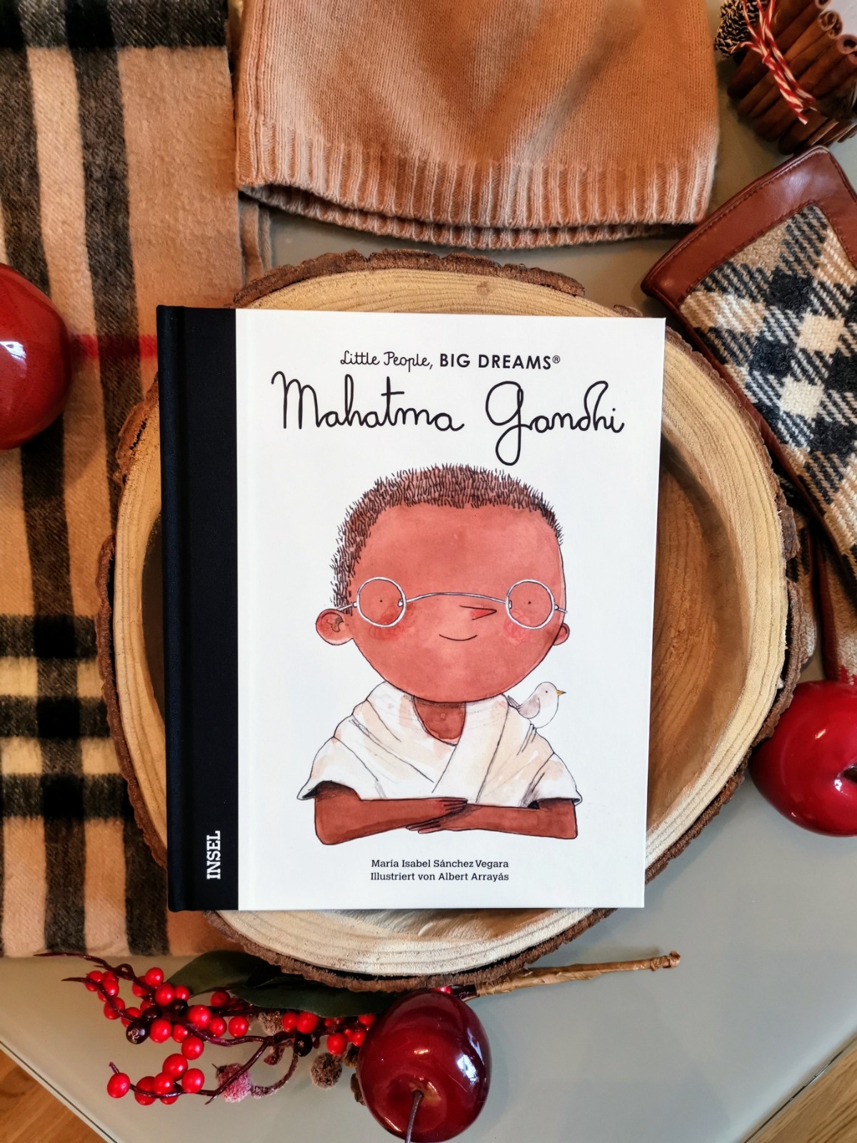 Mohandas wuchs in der indischen Stadt Porbandar auf und träumte früh von einer gerechteren Welt. Als frischgebackener Anwalt ging er nach Südafrika. Dort warf man ihn aus dem Zugabteil der 1. Klasse – weil er kein Weißer war. Daraufhin organisierte er den ersten friedlichen Sitzstreik aller Zeiten. Zurück in Indien, setzte er sich mit friedlichen Methoden für ein Ende der britischen Kolonialherrschaft ein und bekam den Ehrennamen Mahatma – »große Seele«.