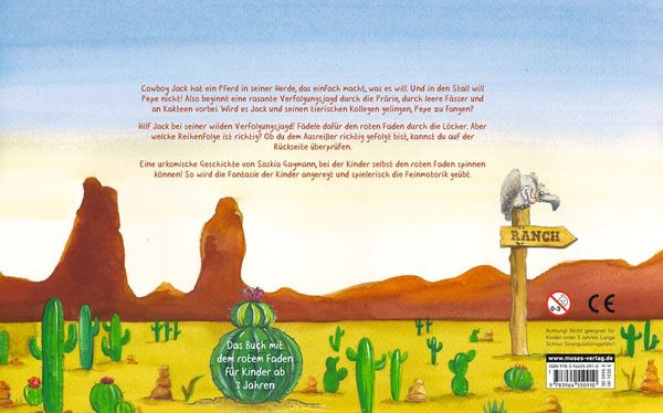 Der kleine Cowboy hat ein Pferd in seiner Herde, das einfach immer macht, was es will. Und in den Stall will es schon gar nicht! Also beginnt eine rasante Verfolgungsjagd durch die Prärie, durch leere Fässer und vorbei an Kakteen. Wird es dem kleinen Cowboy gelingen, das Pferd zu fangen?