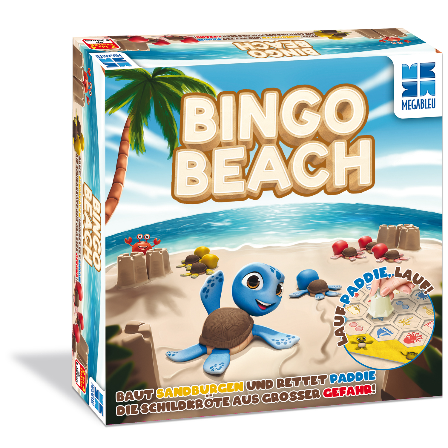 Die kleinen Babyschildkröten sind auf der Suche nach ihrer Mama! Die Spieler helfen ihnen, sicher die andere Seite vom Strand zu erreichen und ihre Mutter zu finden. Aber Achtung: Die Krabbe in der Mitte des Strandes darf die Babys nicht erwischen. Nach dem beliebten „Bingo“-Mechanismus ruft ihr ein Symbol und eine Farbe aus. Alle Spieler dürfen dann auf ihrem Spielbrett auf genau dieses Symbol eine Sandburg setzen, über die sich die Schildkröten bewegen dürfen. Doch jedes Spielerbrett ist anders, deshalb wird es spannend, wer seine Schildkröten zuerst sicher auf die andere Seite des Strands bringt!