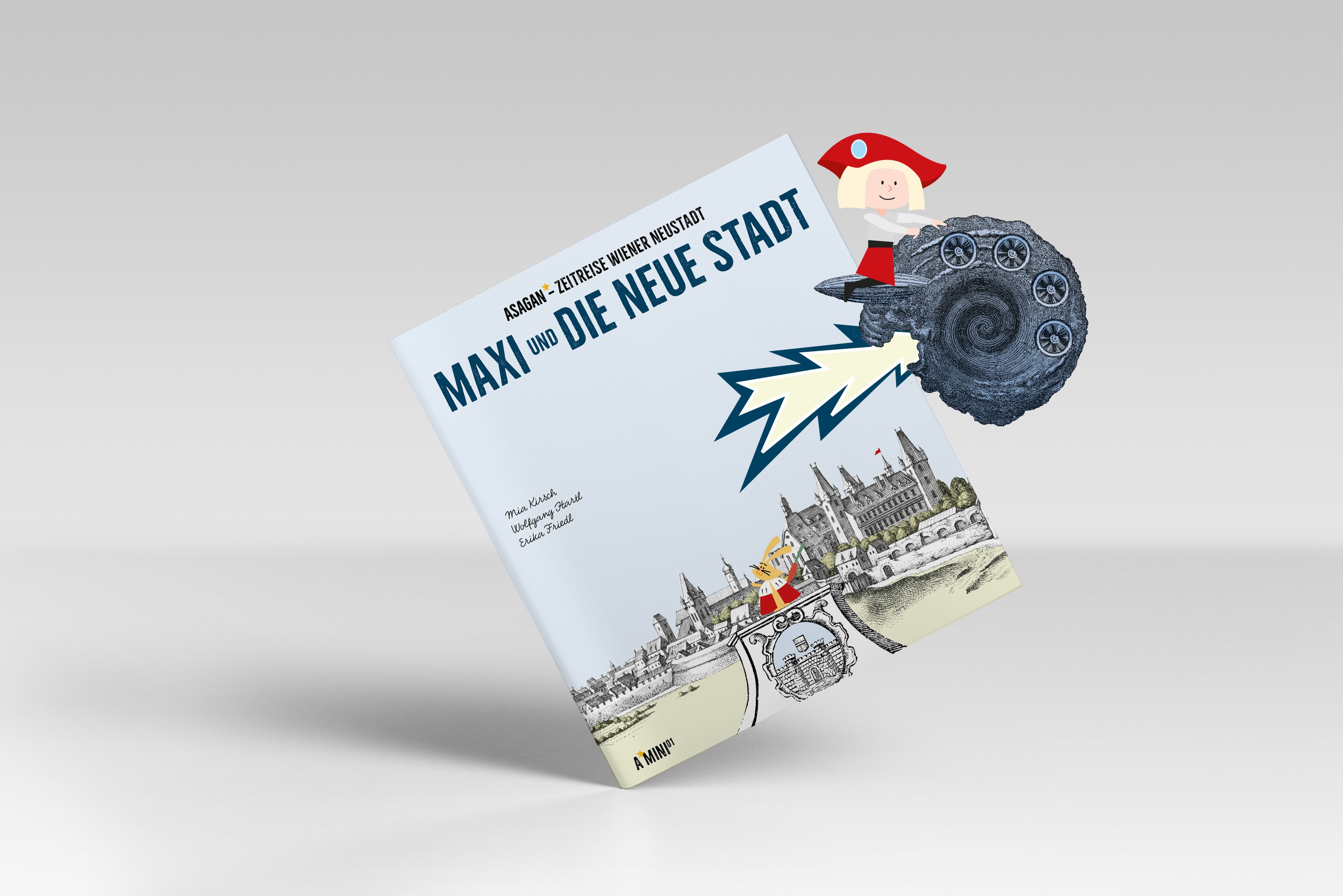In „Maxi und die neue Stadt“ erlebt die kleine Zeitreisende 1192 die Gründung und Entwicklung Wiener Neustadts und sieht, wie innerhalb der Stadtmauern Türme, Häuser und Straßen entstehen, die große Burg einen Kaiser beherbergt und der Dom in die Höhe wächst. 1469 ist sie dabei, wie das große Scharlachrennen stattfindet und erlebt, wie Freundin Elli das Pferderennen für sich entscheidet. Bald wächst Wiener Neustadt weiter, Werkstätten entstehen und Lokomotiven werden gebaut, Autos und Flugzeuge werden hergestellt und dann machen sich Maxi und Elli wieder auf die Reise mit ihrer eigenen fliegenden Zeitmaschine…
