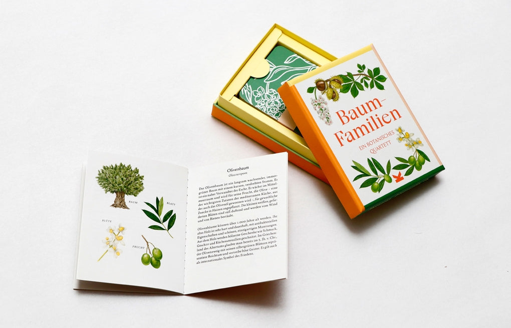 In diesem Quartett müssen der Baum, die Blüte, das Blatt und die dazu passende Frucht gesammelt werden. Wer die meisten vollständigen Baum-Familien hat, gewinnt 😉