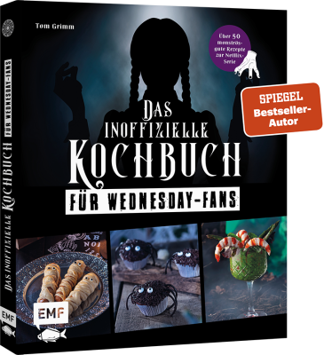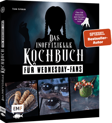 Freunden der Addams Family und insbesondere von Tochter Wednesday, die in einer eigenen Netflix-Serie reüssiert, sei dieses stylish-gruselige Kochbuch ans Herz und auf den Tisch gelegt!