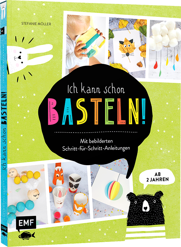 Mit bebilderten Schritt-für-Schritt-Anleitungen können natürlich für die Kleinsten die Eltern, Großeltern, Tanten oder Onkeln Hilfestellung geben. Es ist das Material genau angegeben sowie deren Anwendung. Insgesamt findet man 22 kunterbunte und einfache Bastelprojekte sogar für die ganze Familie.