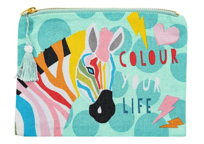 Ich liebe es mit hübschen Täschchen zu verreisen und habe immer eines in meiner Tasche. Dort sind die wichtigsten Dinge drinnen, damit sie nicht in der Tasche oder im Reisegepäck herumfliegen oder aufgehen können. Ich habe große und auch kleine Täschchen zu Hause und freue mich jedes Mal, wenn sie zum Einsatz kommen. Dieses hübsche Exemplar hier ist aus BIO Baumwolle produziert und weist ein sehr hübsches Motiv mit einem farbenfrohen Zebra auf. Falls es mal schmutzig wird, kann man es mit der Hand waschen, um es wieder sauber zu bekommen. Ein wunderschönes Geschenk, für alle, die gerne ein bisschen Farbe in ihrem Leben haben.