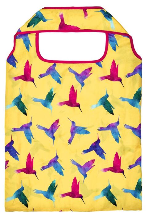 Denn in unsere faltbaren Einkaufstaschen passt jede Menge rein. Egal, ob als Einkaufstasche oder als trendiges Accessoire – der moses. Shopper Birds darf in keiner Handtasche fehlen. Nachdem Sie auch die größten Einkäufe sicher und ohne Plastiktüte nach Hause getragen haben, lässt sich der Shopper nach dem Gebrauch einfach wieder klein zusammenfalten und in die integrierte Hülle stecken. So bleibt der Einkaufsshopper stets griffbereit. Die Tasche ist in einem fröhlichen Gelb gehalten und wird von einem bunten Vogel-Muster geschmückt. Die Farbverläufe in Blau-, Grün- und Pink-Tönen, in denen die Vogelformen gehalten sind, machen den Shopper zum wahren Hingucker. Passend dazu ist die Tasche am Bund der Träger und der Öffnung pink umrandet. Das farbenfrohe Design des Shoppers macht sofort gute Laune und Lust auf einen Ausflug nach draußen!