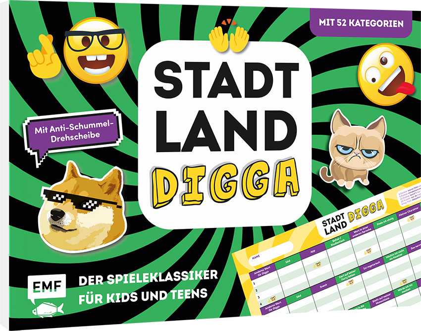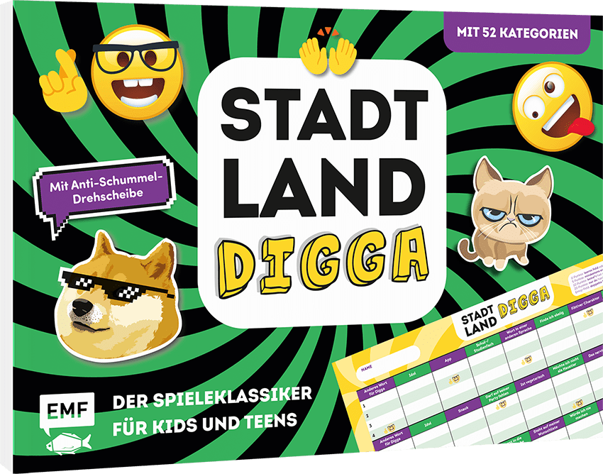Egal wo du bist – Mit diesem spannenden Stadt, Land, Digga-Block bringst du immer eine große Portion Spaß mit in die Runde! In 52 Kategorien könnt ihr euer Wissen testen und vor allem eure Kreativität unter Beweis stellen. Der Spieleblock überzeugt mit coolem Design und spannenden Themen – perfekt für alle Stadt, Land, Fluss-Fans. Von einfachen Fragen bis hin zu kniffligen Kategorien – hier ist alles und für jeden etwas dabei.